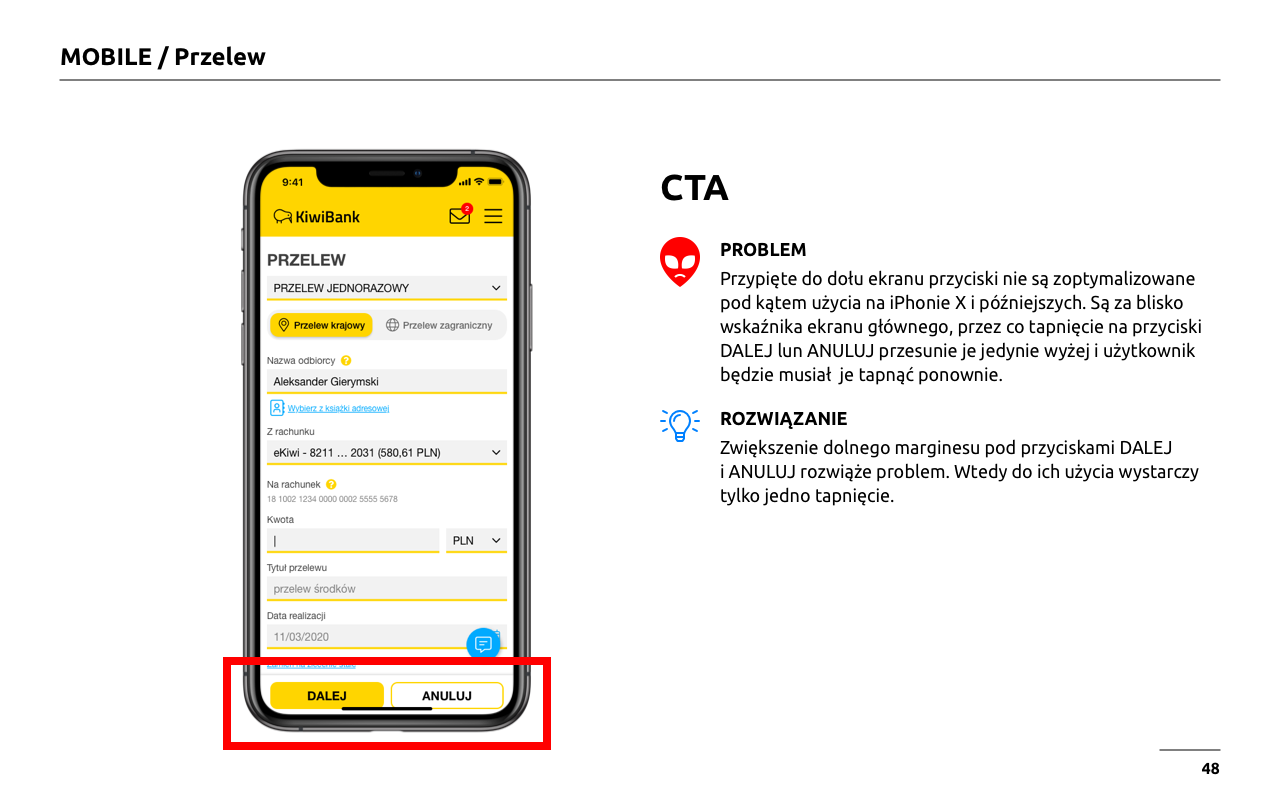 W trakcie analizy eksperckiej wcielamy się w rolę użytkownika. Spisujemy problemy, na które natrafiliśmy.